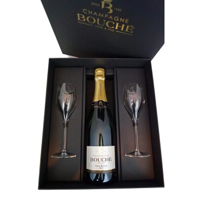Geschenkset mit 1 Flasche Champagner Bouché Couveé Reserve 0,75 Liter mit 2 Gläsern