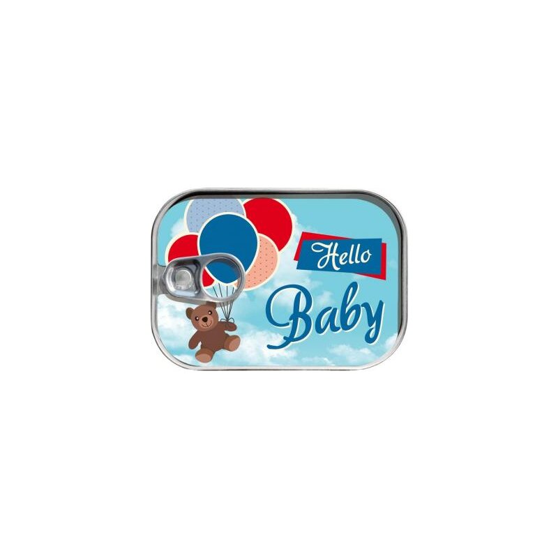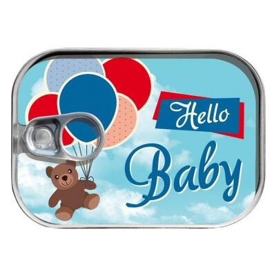 Aufwändig gestaltete Dosenpost 'Hello Baby'