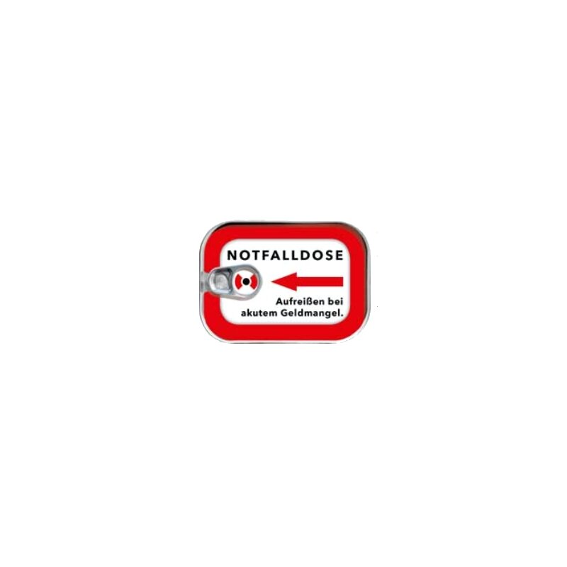 Aufwändig gestaltete Dosenpost 'Notfalldose: Aufreißen bei akutem Geldmangel'.