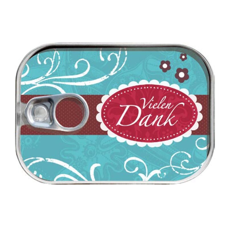 Aufwändig gestaltete Dosenpost 'Vielen Dank'