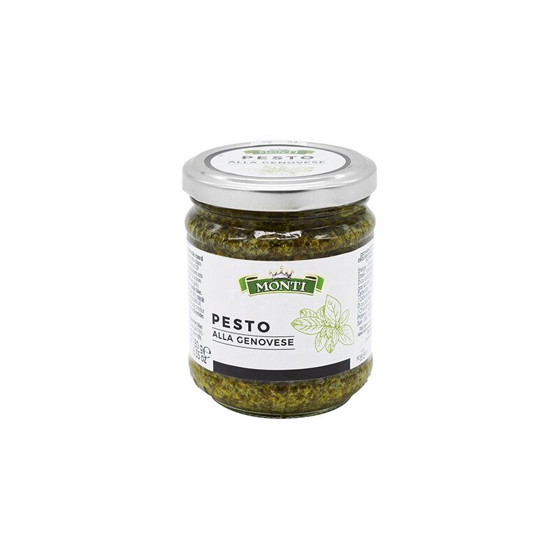 Klassisches italienisches Pesto Genovese mit Basilikum, Cashew-Nüssen, Mandeln und Pecorino.