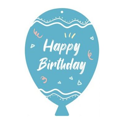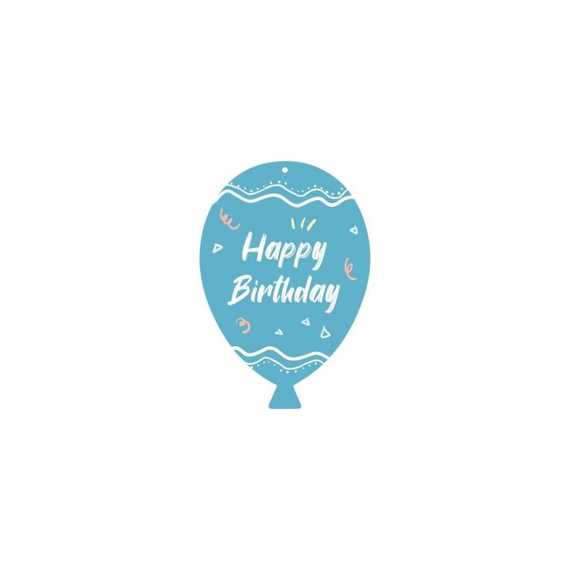 Farbig bedruckter Finnenholzkarton in Form eines Luftballons mit der Aufschrift 'for you - Happy Birthday'