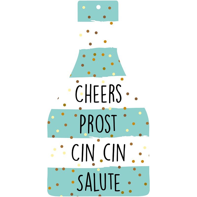 Farbig bedruckter Finnenholzkarton in Form einer Flasche "Auf Dich" mit passendem Kuvert