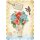 Aufwändig gestaltete Grußkarte 'Alles Gute' - petit oiseau mit Schmuckrand, Motiv: Blumenvase und kleiner Vogel, inkl. passendem Briefumschlag