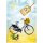 Aufwändig gestaltete Grußkarte  'Fahrrad 80', Motiv: Fahrrad mit Sonnenblumenstrauß, inkl. passendem Briefumschlag