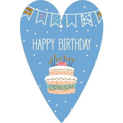 Roter Finnenholzkarton in Herzform, Aufschrift 'Happy Birthday' mit Anhänger und passendem Briefkuvert.