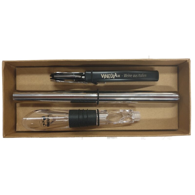 Hochwertiges Weinkühlerset bestehend aus 1 Ausgießer, 1 Kellnermesser, 1 Kühlstab